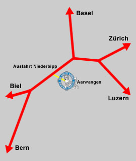 Nimm auf der Autobahn A1 die Ausfahrt Nr 43 in Richtung Langenthal. Ausgangs Aarwangen vor der Coop-Tankstelle von der Langenthalstrasse nach Rechts in die Industriestrasse einbiegen. Du findest uns am Ende der Industriestrasse, Nummer 30.